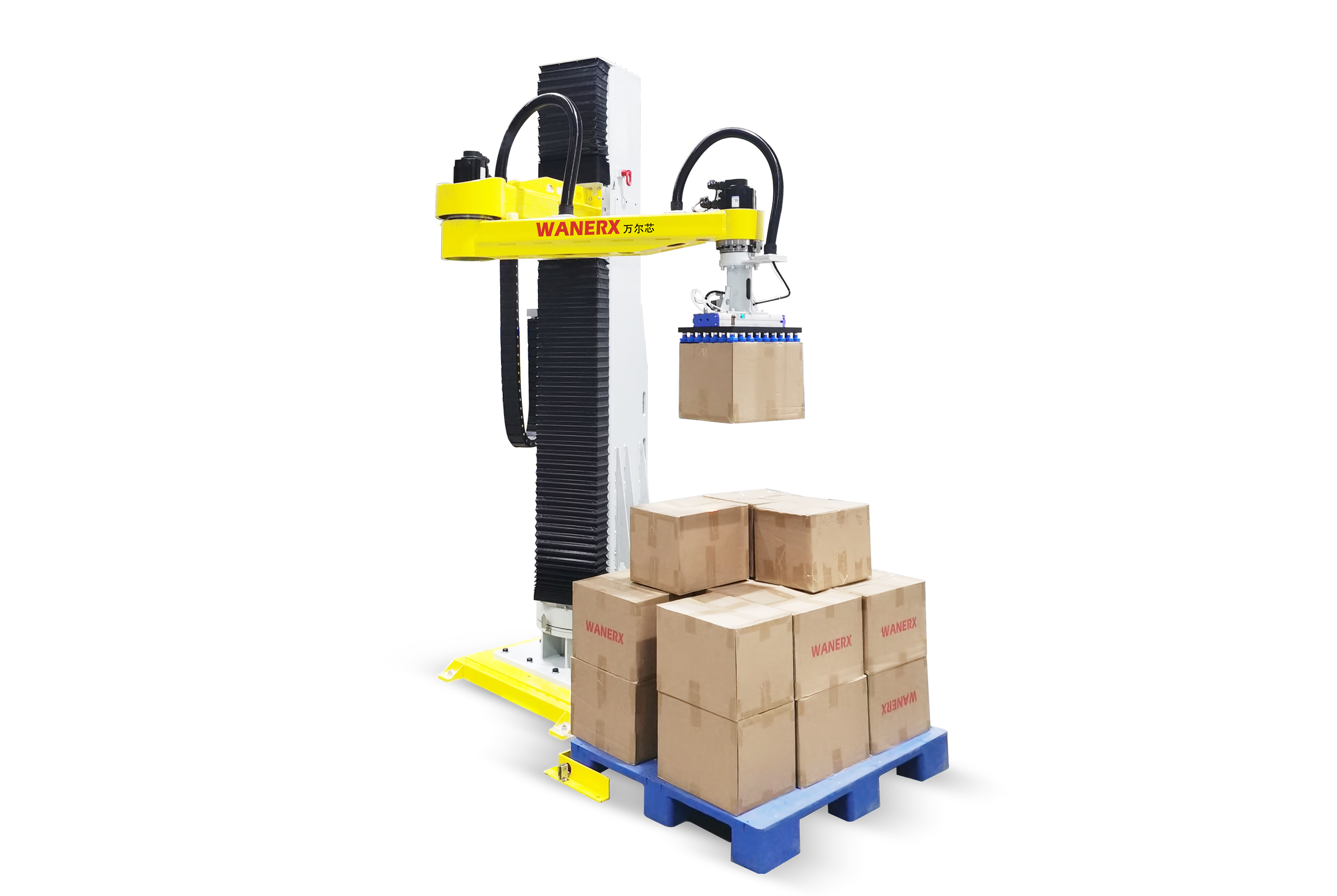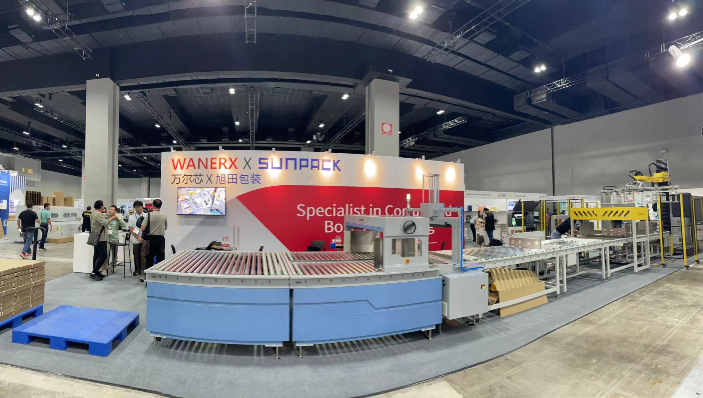 萬爾芯參展設備:立柱碼垛機紙箱碼垛整線